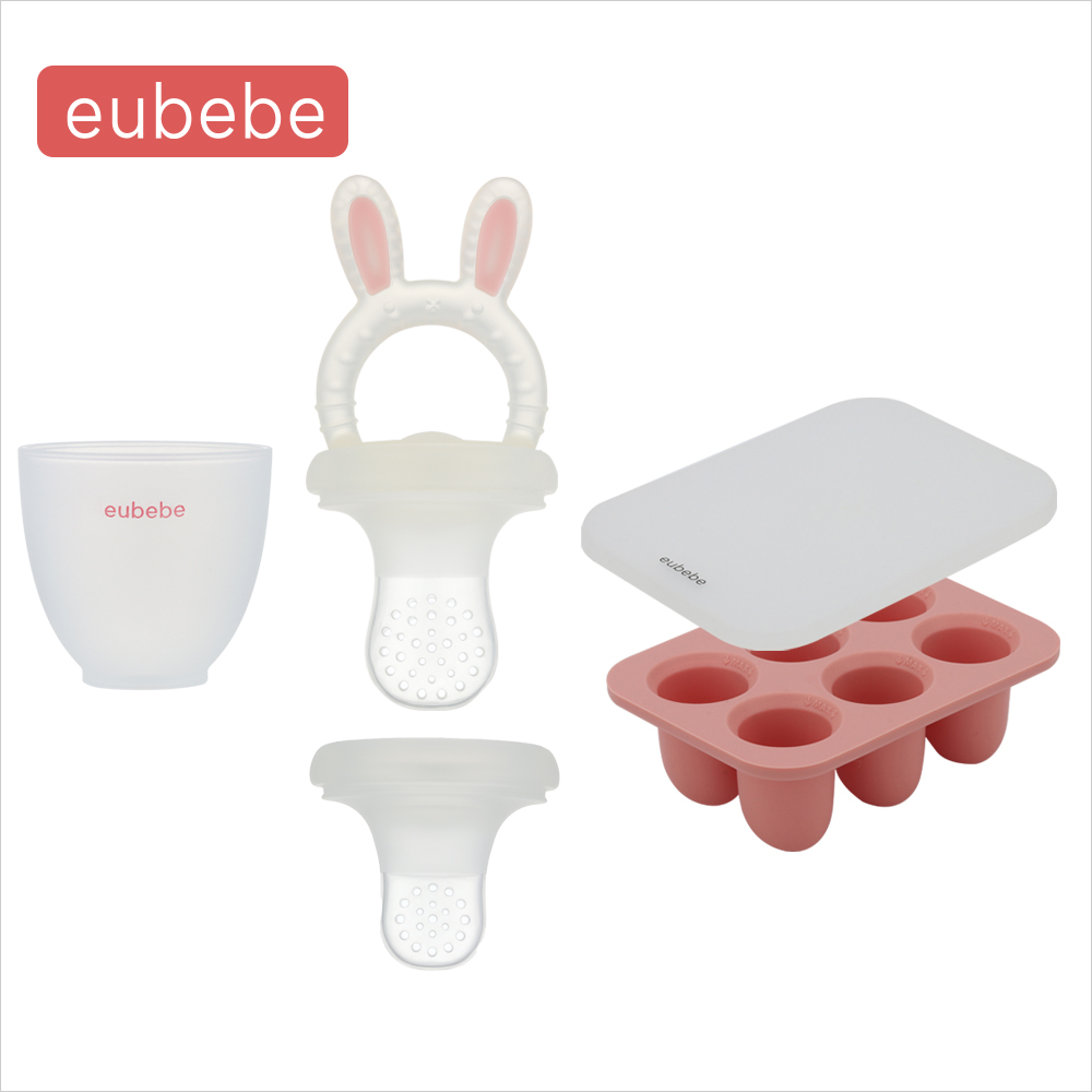 [이유베베] 실리콘 팝 아기 과즙망+큐브 세트 / 과일망 이앓이 치발기 분유 과일 이유식