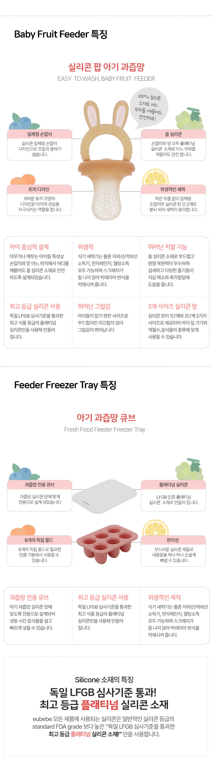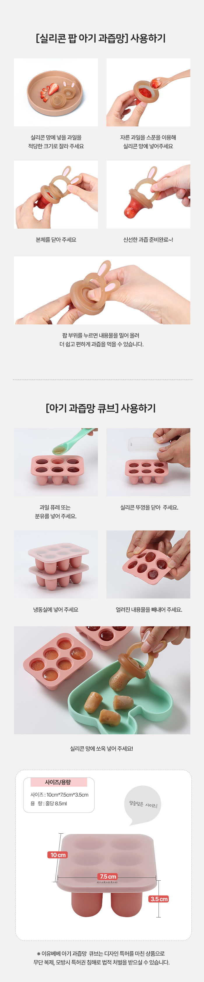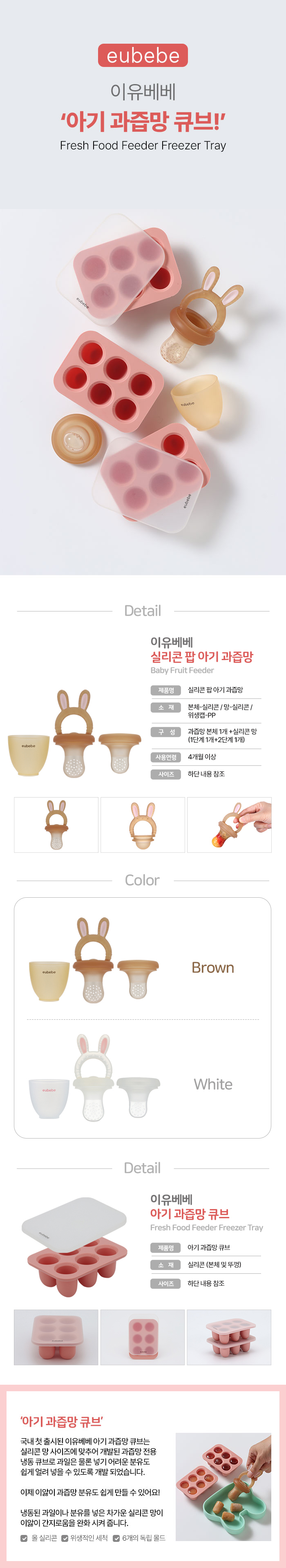 [이유베베] 실리콘 팝 아기 과즙망+큐브 세트 / 과일망 이앓이 치발기 분유 과일 이유식