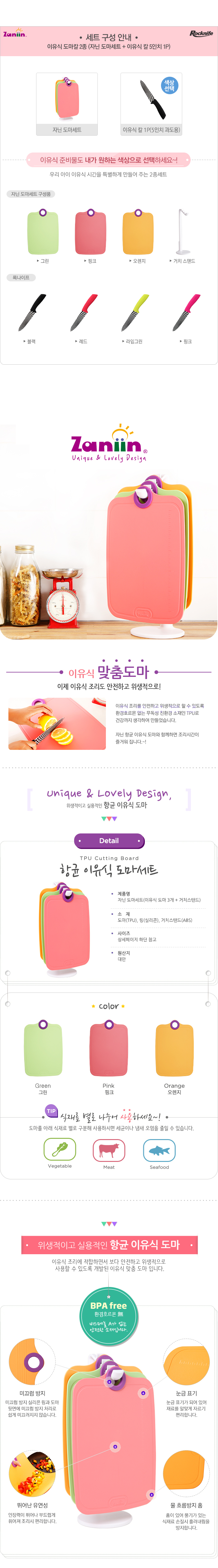 | 색상 | 도마:그린,핑크,오렌지/거치대:화이트, 칼: 블랙,레드,라임그린,핑크 |